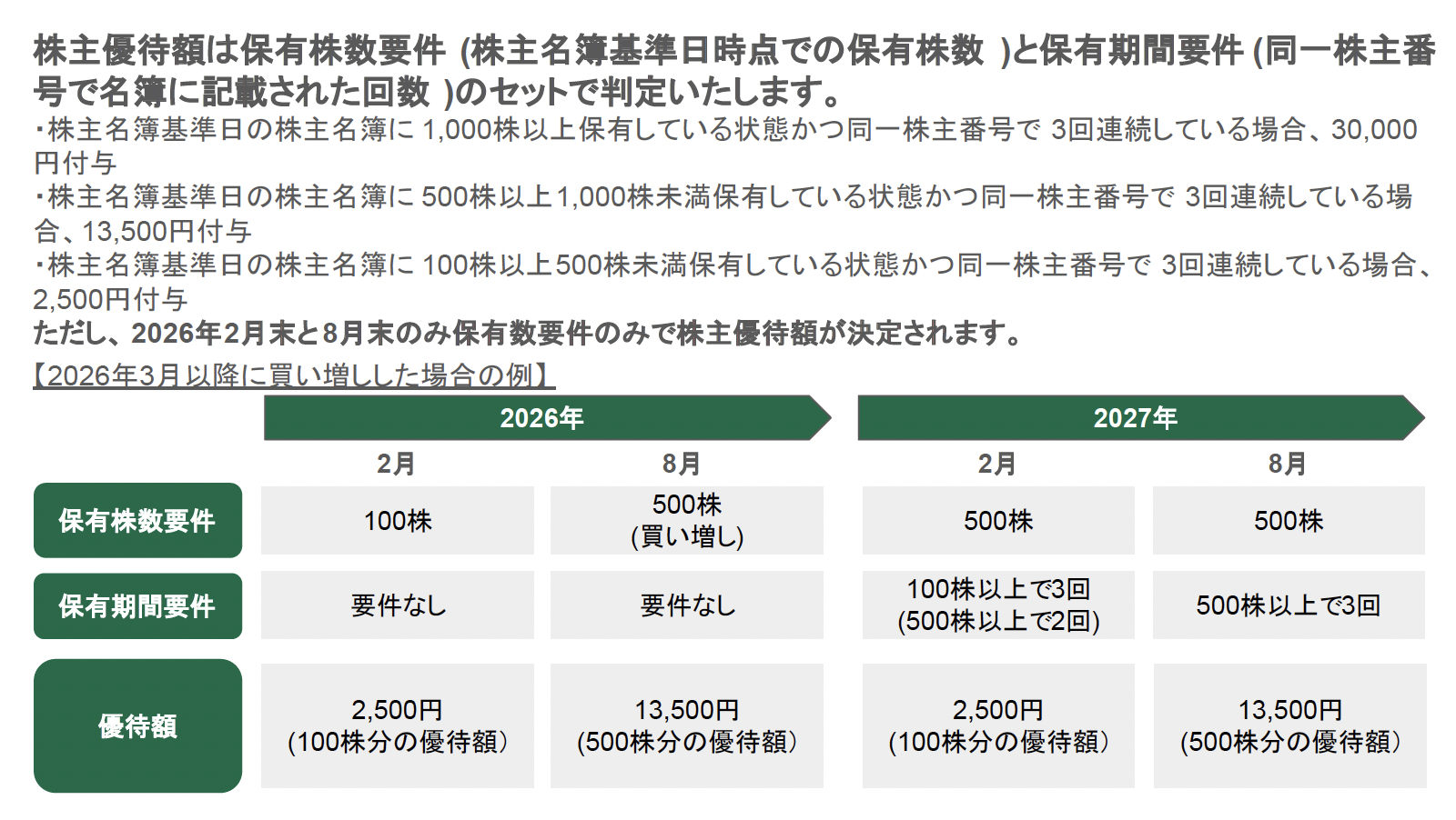 株主優待額について詳細を教えてください。