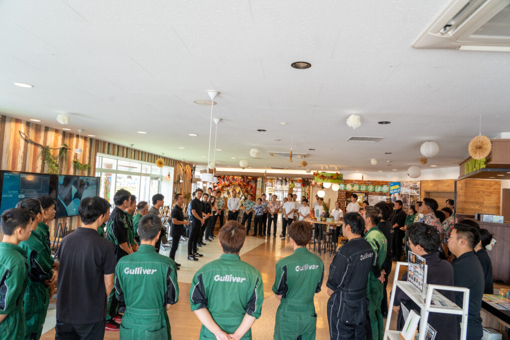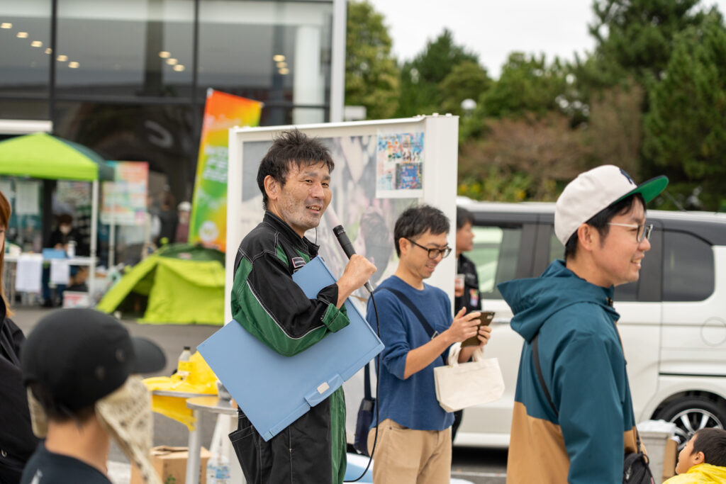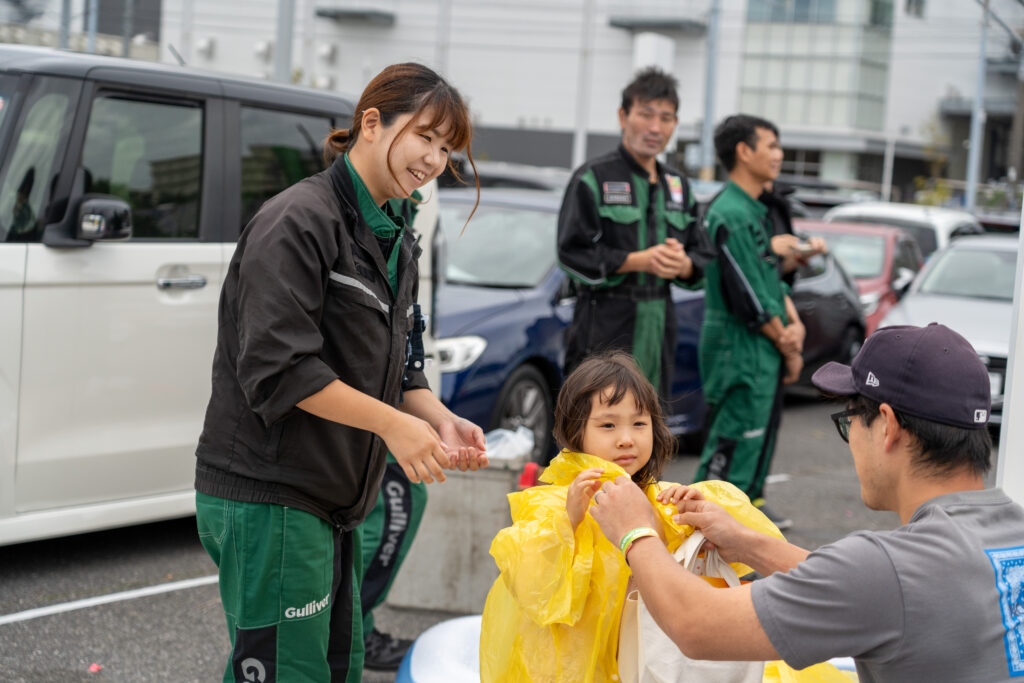 過去最大の規模とあって、事前準備は大忙し。当日も通常営業を行いながらの総動員体制でした。普段は整備工場で作業をし、お客様と接する機会の少ないカーケアスタッフたちも、この日は運営スタッフとして、時にはマイクでアナウンスをするなど奔走しました。