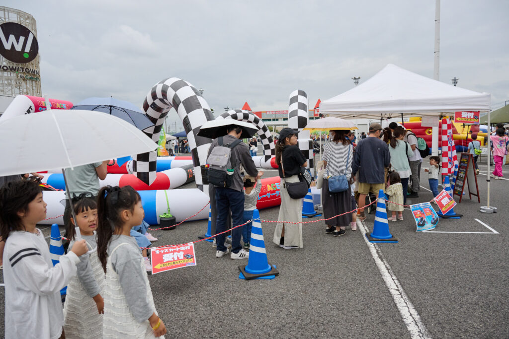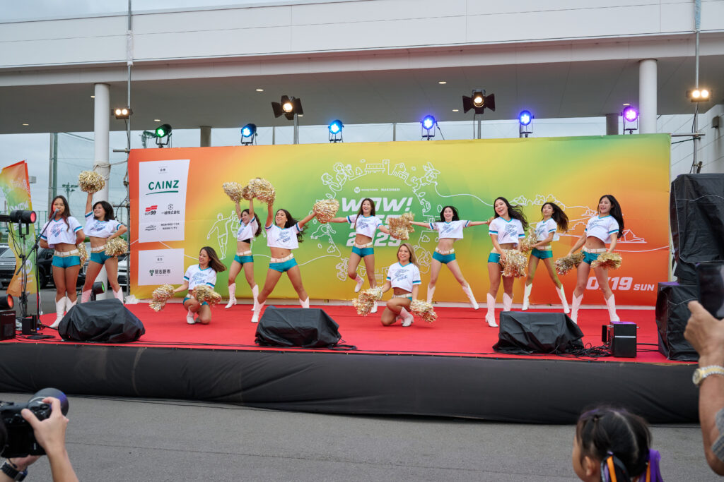 特設サーキットで電動カートに乗れる「キッズレーサーランド」 は、常に行列ができるほどの人気ぶり。サブステージでのキッズダンスや、地元のアメリカンフットボールチーム「オービックシーガルズ」 のチアパフォーマンスも会場を華やかに彩りました。