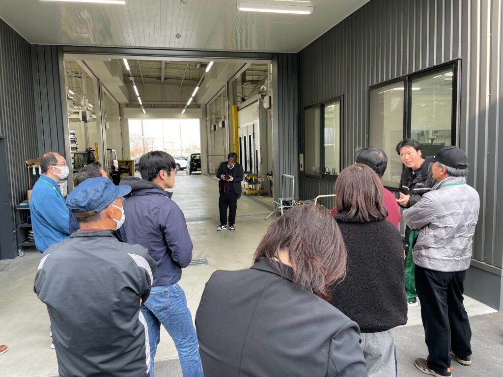 整備工場や板金工場では、工場長も解説に加わり、間近で作業の様子をご覧いただきました。専門的な設備を前に、時にはざっくばらんなやり取りも飛び交うなど、終始和やかなムードに包まれました。